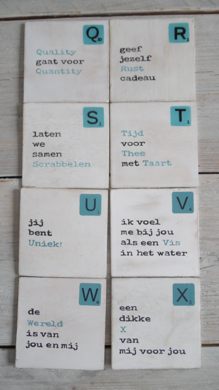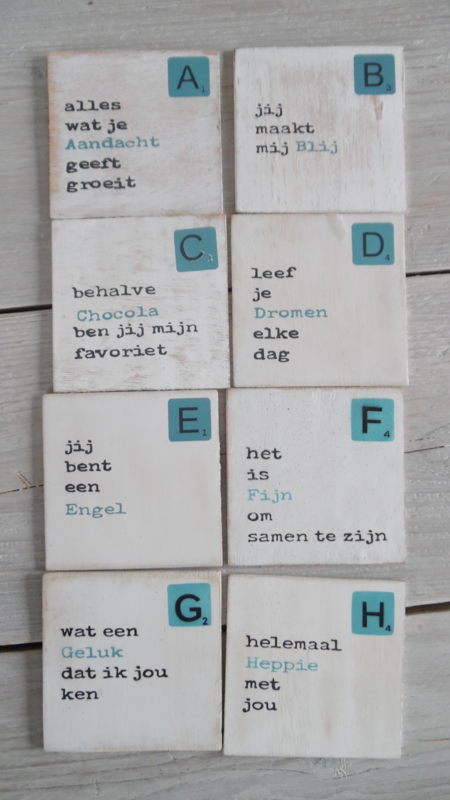 setprijs : 6 onderzetters & bakje € 9,50 U besteld setprijs en bij opmerkingen geeft u aan welke letter onderzetters u erbij wilt.