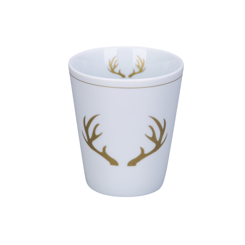 beker wit met gouden rendier print als je de beker ronddraaid zie je de afbeeldingen die op de foto's staan