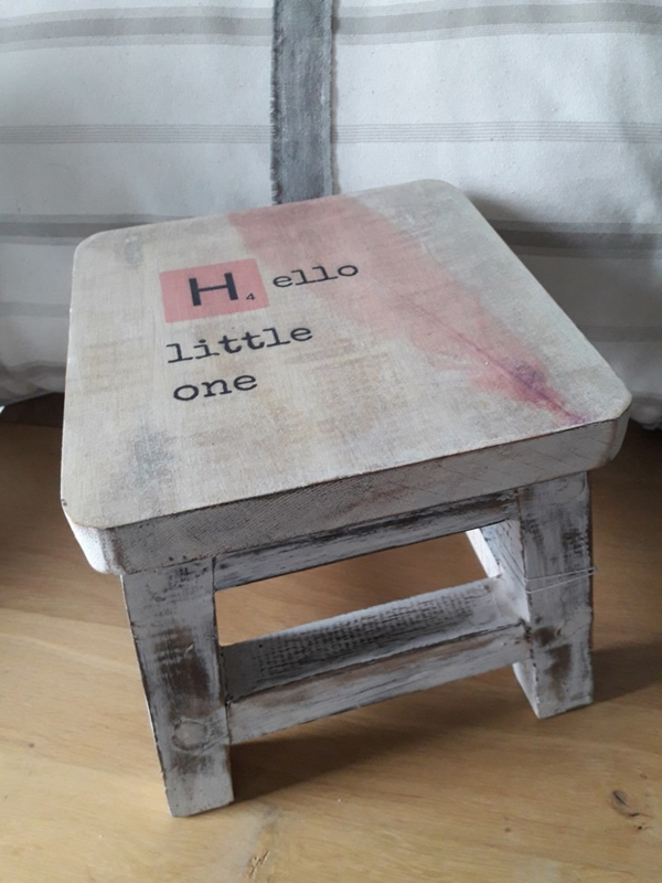 U kunt de extra gewenste tekst aangeven bij opmerkingen in het bestelproces. Geef ook aan welk krukje u wilt.