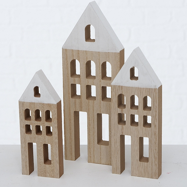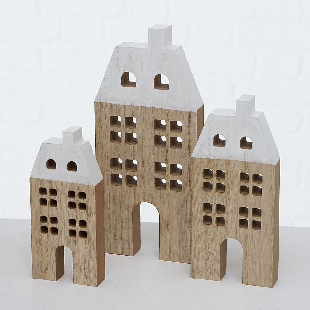 3 delige set houten huisjes met wit dak