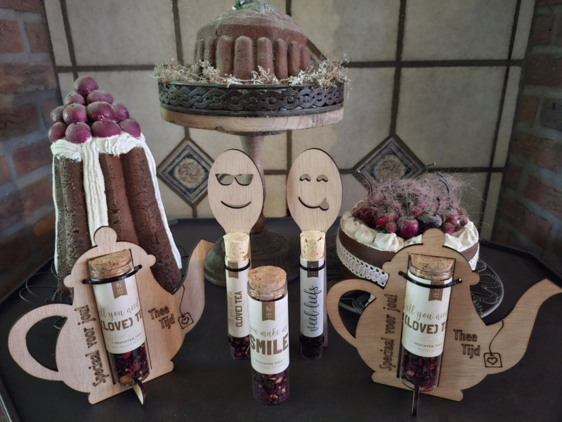 Een prachtig houten theepotje, gevuld met een glazen buisje met kurk dat een fruitige thee blend bevat. De wilde kersen melange combineert de frisse tonen van hibiscus, rozenbottels en appel met de zoetheid van druiven en de volle smaak van zomerzon-gerijpte kersen.