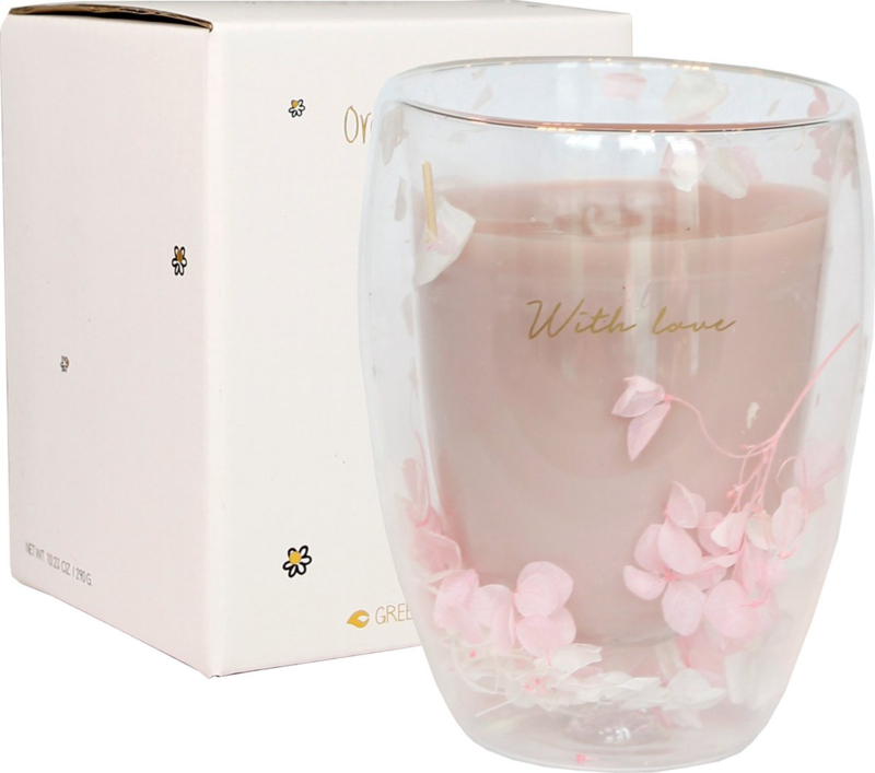Artikelnummer: GL.DWF.022.04 OverzichtDeze luxe geurkaarsen hebben een dubbele wand waar gedroogde bloemetjes tussen zitten. Een èchte eyecatcher! Deze kaars ziet er niet alleen leuk uit, als de kaars is opgebrand, kan je het glas gebruiken als theeglas of een andere heet of koud drankje. Door de dubbele wand zorgt het glas ervoor dat je drankje warm blijft, zonder dat je handen ook heet worden.
